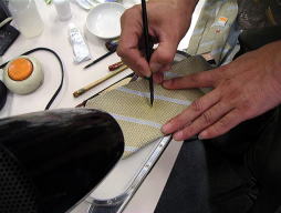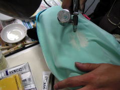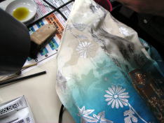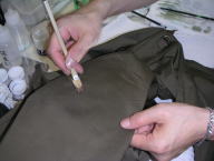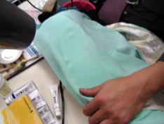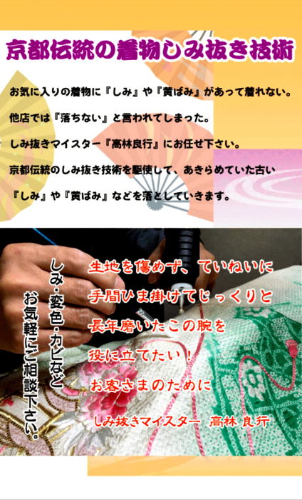 しみ抜きの次に行うのが復元加工!!それはどのようにするのか? では私の仕事、京技術修染会 認定修復師の施術の一部をご覧下さい
