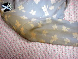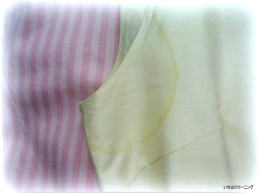 スカートのスソに付いた茶褐色の古いシミの一つです(これがいわゆる黄変です)