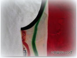 | スカーフの移染 | スーツの水洗い Wクリーニング メンテナンス | ネクタイのしみ抜き