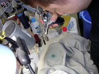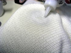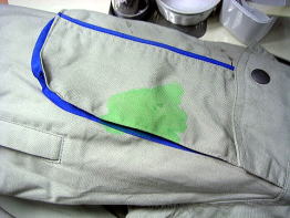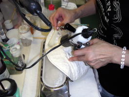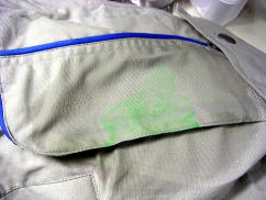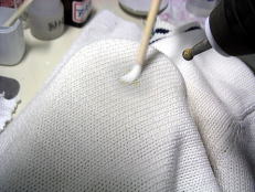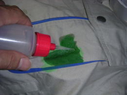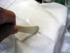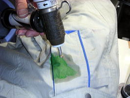 (下の写真)バキュームマーの中にシミと溶剤や水が吸引されていきます