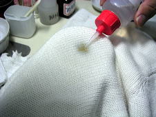 やはりしみ抜き台の上で処理いたしました
