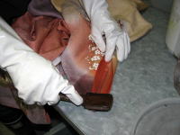只今漂白中 なるべく地色が抜けないように... やはり抜けました 細かな部分まで色掛けしてます