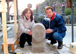 最近では 精神を集中統一のために 奉納石仏の石彫りを 夫婦ではじめました。 完成はいつになりますか... でも 無心に彫る 着物の染みぬきと通ずるものがあります。