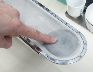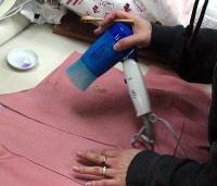 下の写真)バキュームマーの中にシミと溶剤や水が吸引されていきます