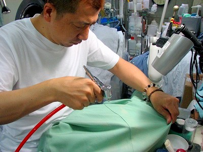 日本、そして中国や韓国にまで2,000人の生徒を持つ最大の染み抜き技術勉強会 「京技術修染会」の2000人以上いる技術修了者の中から 、更に厳しい筆記試験及び染色技能試験に合格したものに与えられる【 修復師 】