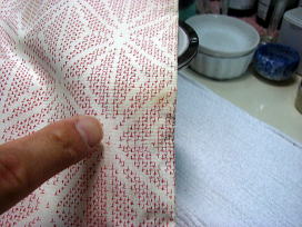 帯についた 古〜いシミです。 なんか みんな 取れてしまいますね 笑。